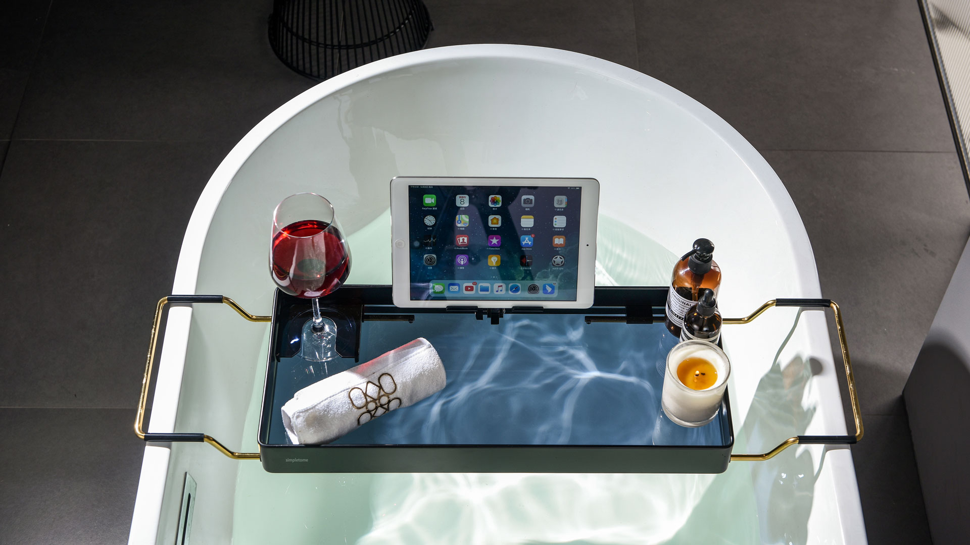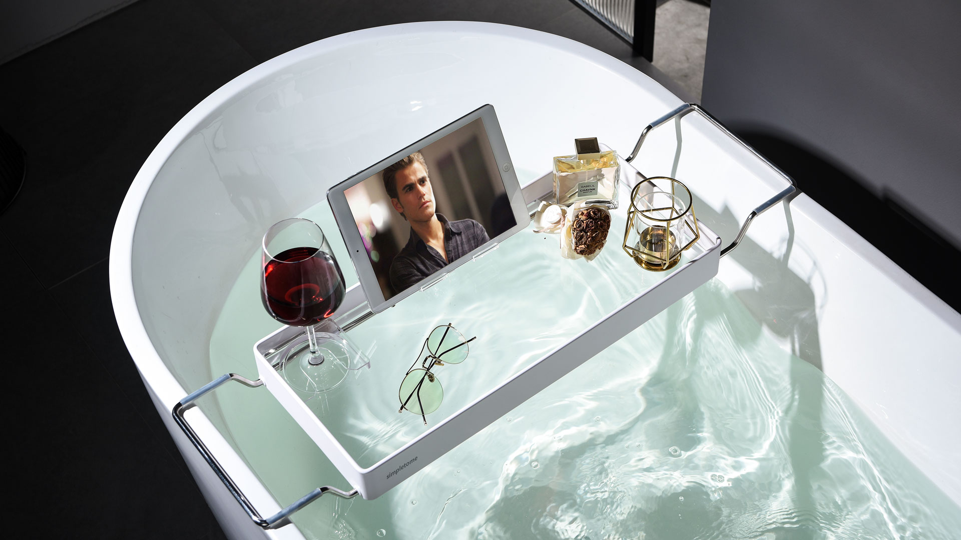 Bathtub Tray Expandable, Floating Clear Acrylic with Aluminum Alloy, Anti-slip