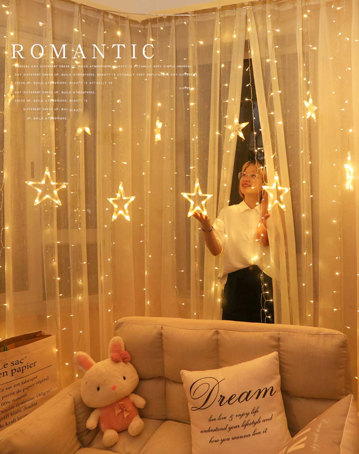 Remote Control | 8 Twinkle Modes | 138PCS LED | 6PCS Dia.20CM Big Stars + 6PCS Dia.10CM Small Stars | USB Cable Length 2Meters
