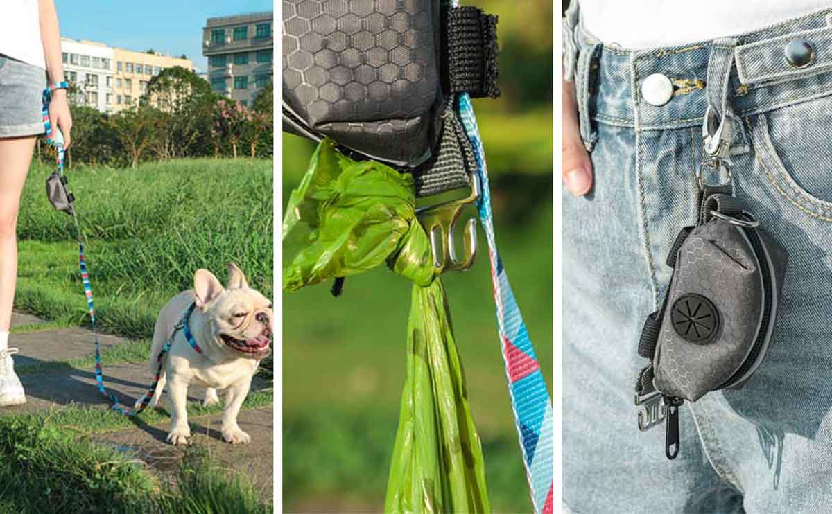 Waterproof | 420D Nylon | YKK Smooth Zipper | With Waste Bags Carrier Hook | Improved Elastic Strap | Metal Buckle | Can Hold Mp3, Earphones, Keys, And Other Small Parts | Dog Lover Must Have | No Crack Knocking Noise. Keep You Dogs Quiet And No Restless