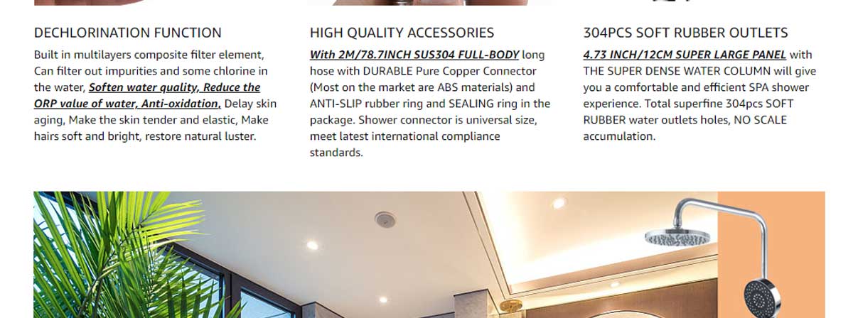 NEW DESIGN Ultrafine Water Column | Shower In Spring Rain with 304 Water Outlets | High Pressure | ROTATE to Switch 3 Modes | ① Drizzle Mode ② Rain Mode ③ High Pressure Water Mode | ABS Chrome Finish Simple Handle