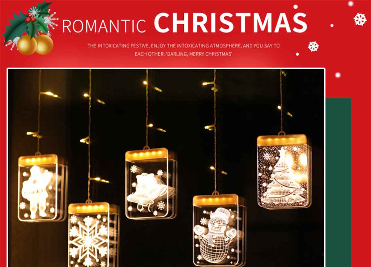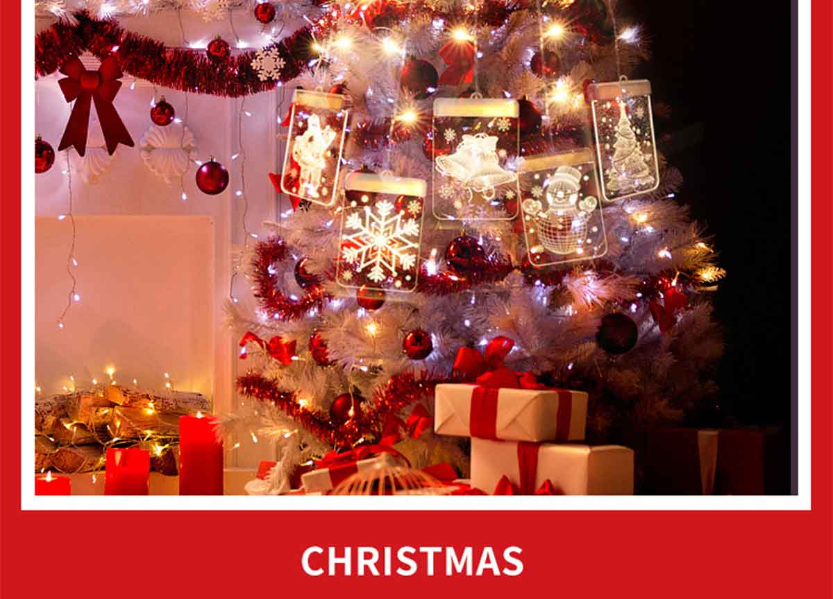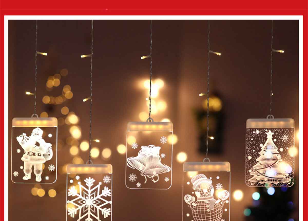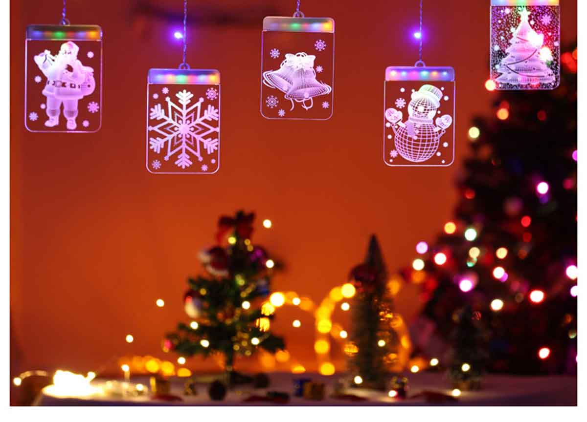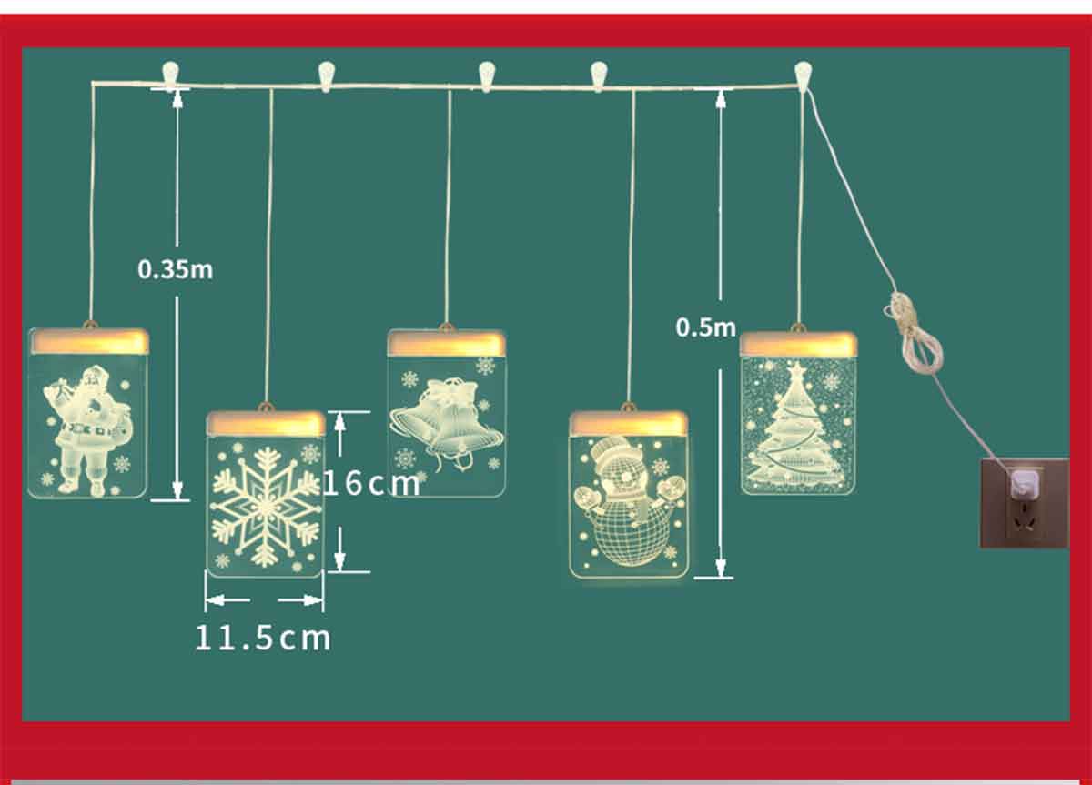 1.5 x 0.5 Meters | 16 x 11.5 CM Warm/Colorful LED with Acrylic Panel | USB 4.5V 6W | 5Pack Include 1*Santa Claus, 1*Christmas Tree, 1*Snowman,1*Christmas Bells, 1*Snowflake | Waterproof