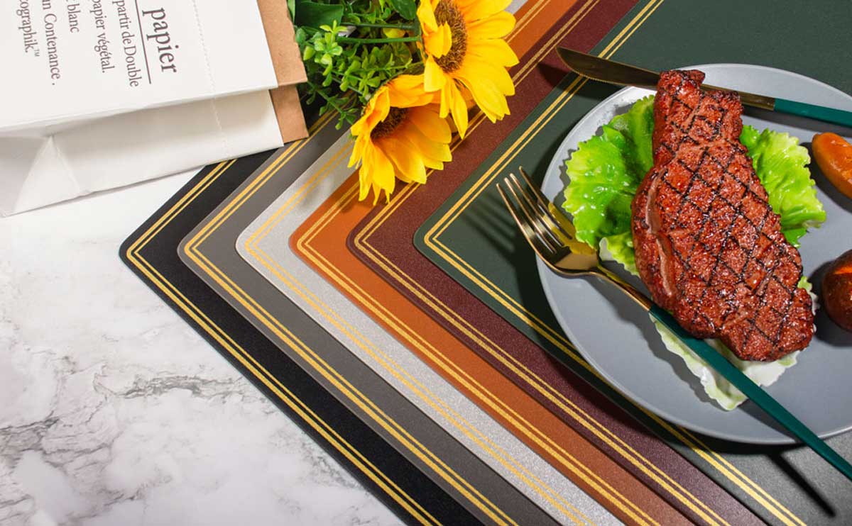 Double-Gilded Border PU Leather Placemats Wiping Cleaning Set of 4