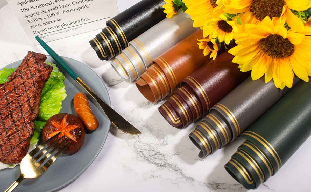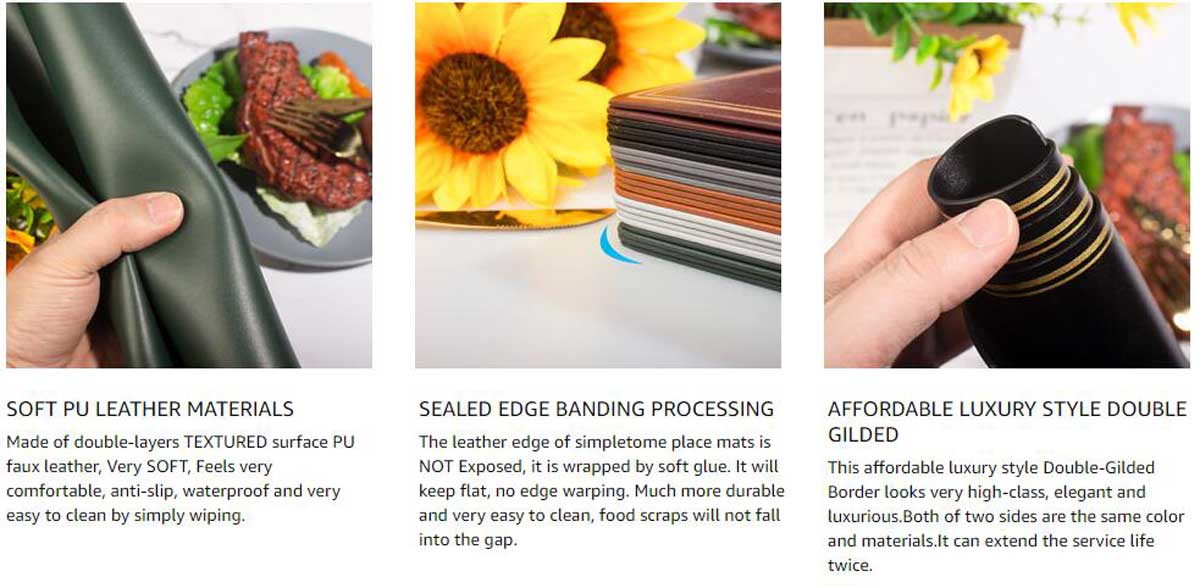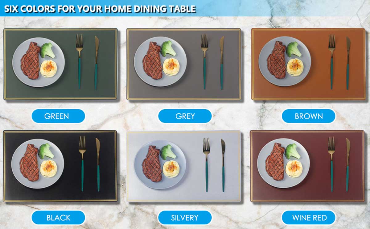 Double-Gilded Border | Both Of Two Sides Can Be Used | PU faux leather | Anti-slip | Double Layers | Easy Wiping Cleaning | Set Of 4 | 17.72 X 11.8inch (45 X 30cm) | Looks Tasteful, Stylish And Classy | Round Edge Covers