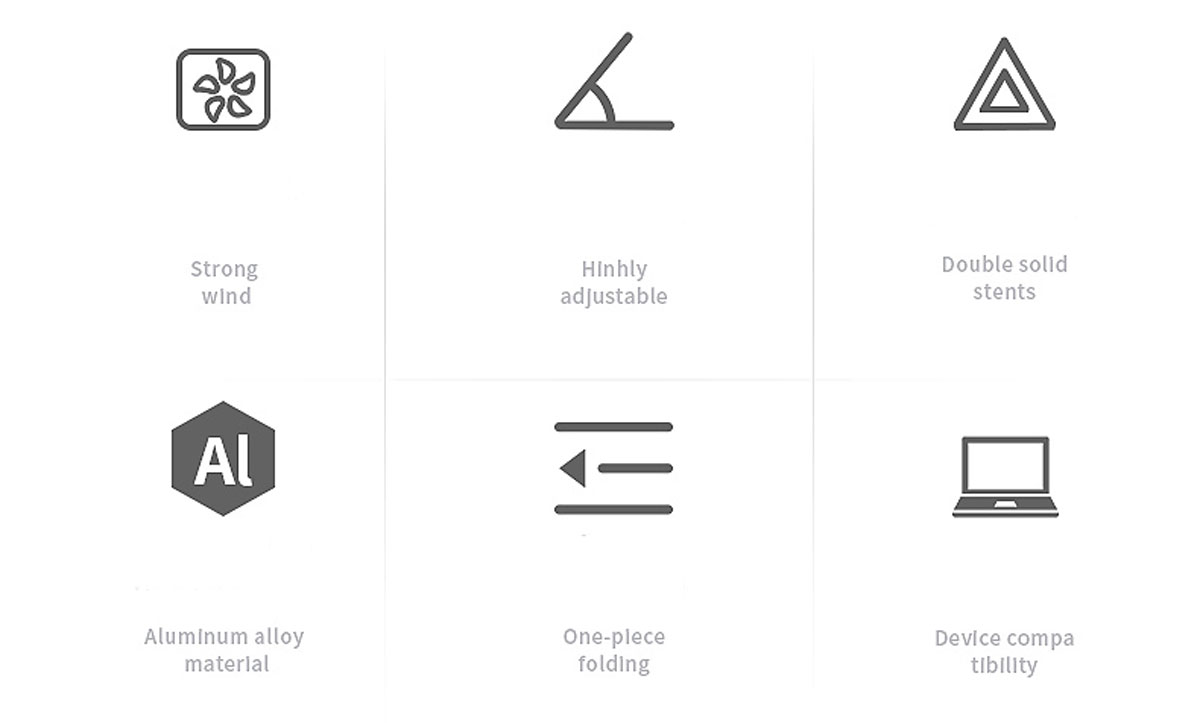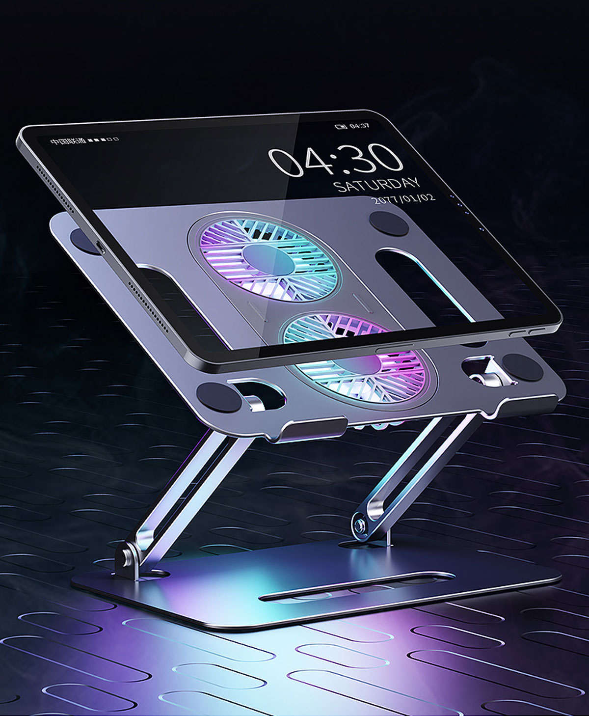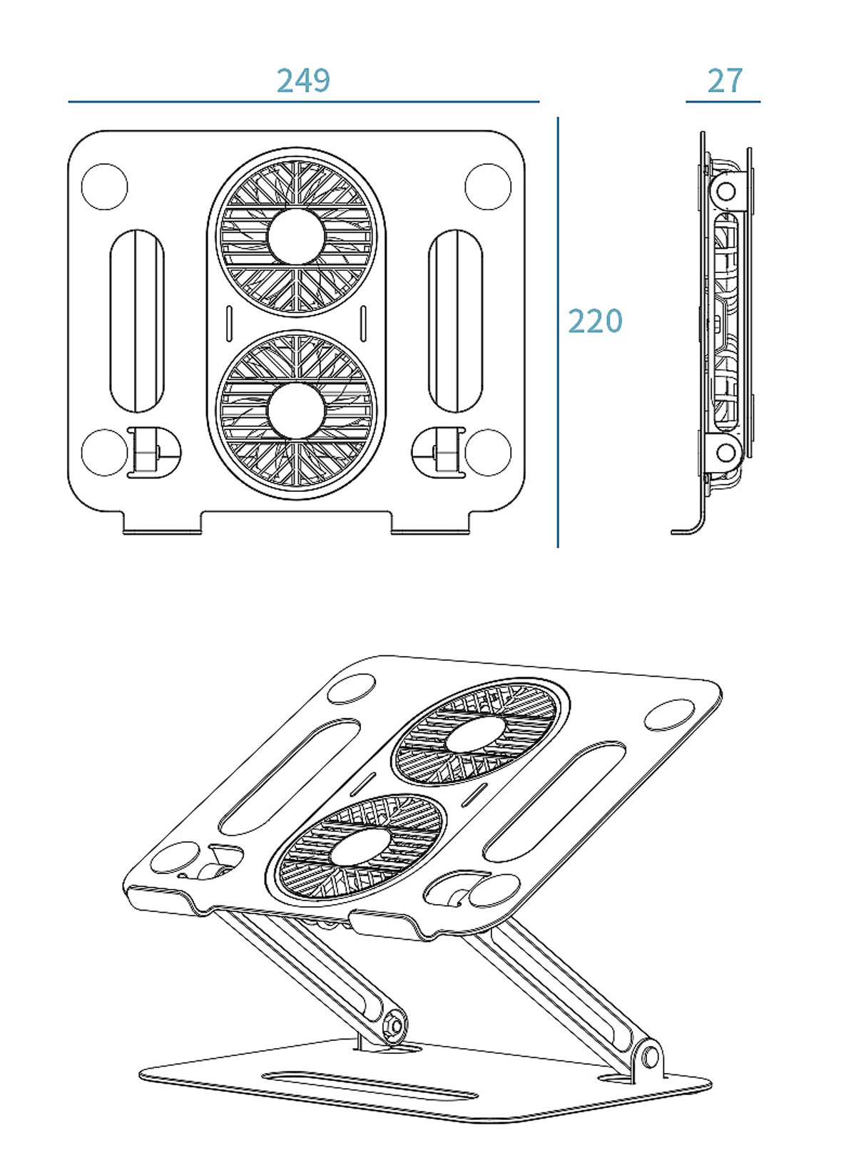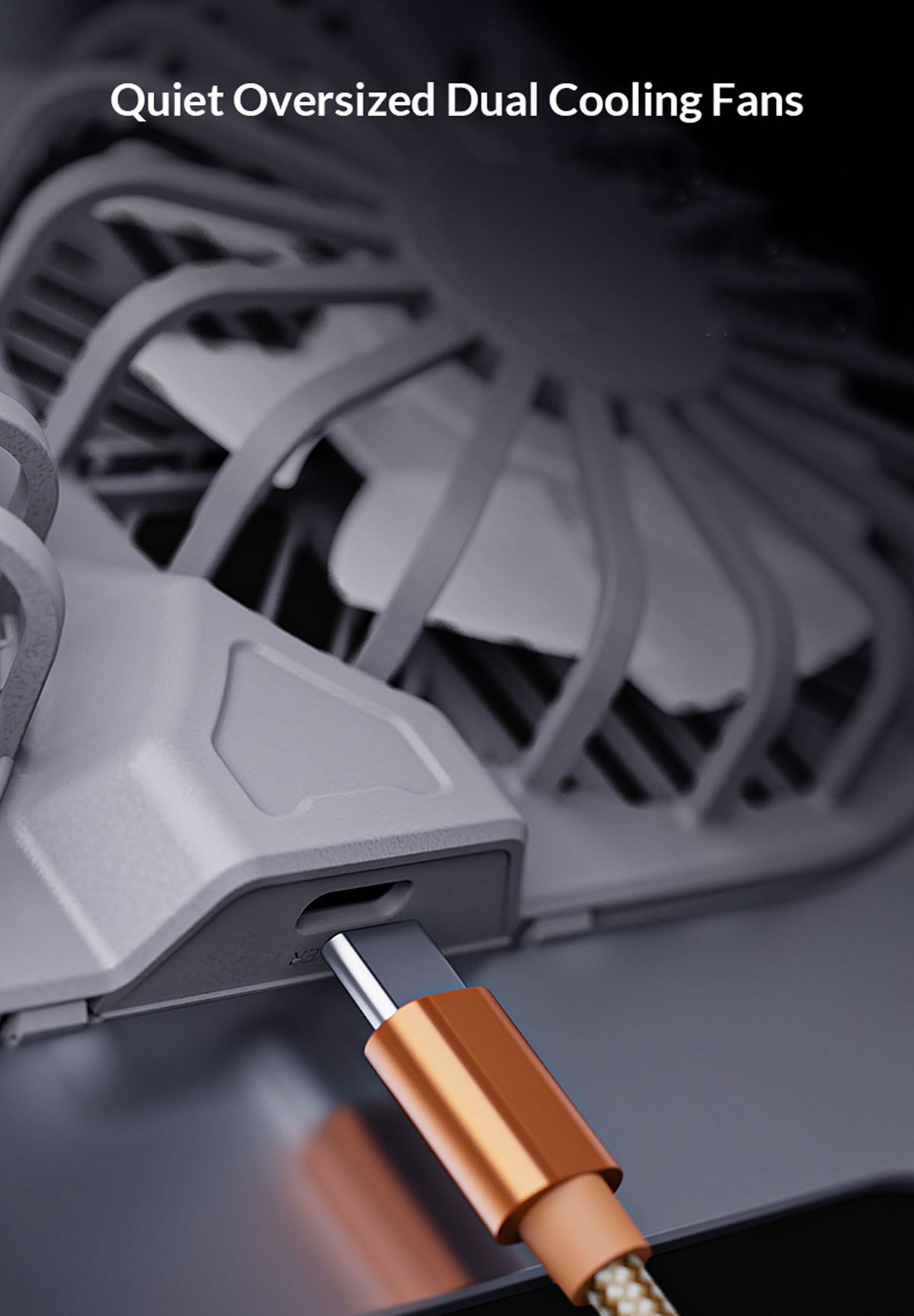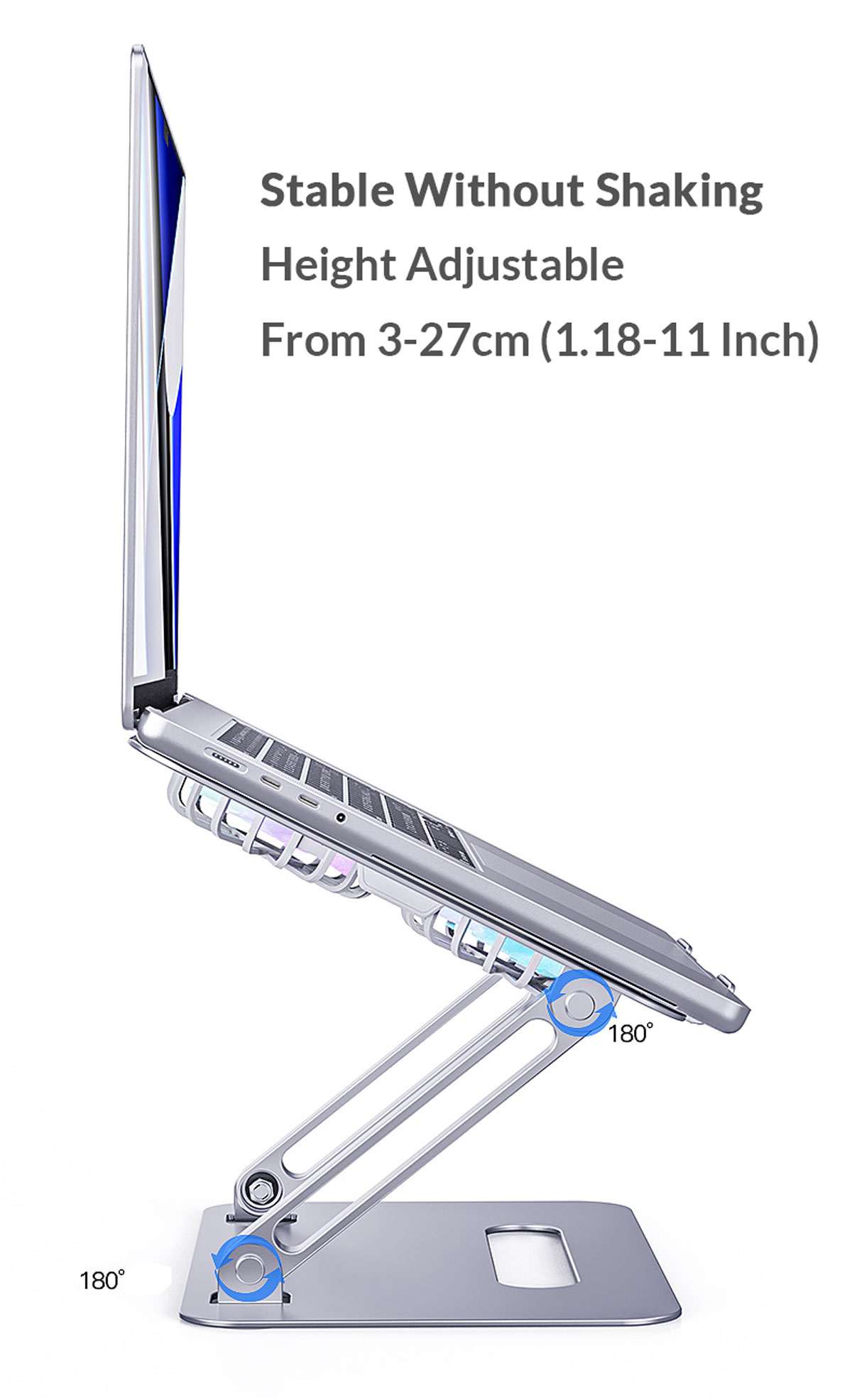 Anodizing Process Does Not Rust 2.55MM Thicken Aluminium Alloy | Quiet Oversized Dual Cooling Fans | Height Adjustable From 3-27cm (1.18-11 Inch) | Adjustable Damping, Stable Without Shaking | Soft Silicone Pad To Protect From Scratches | Foldable Design