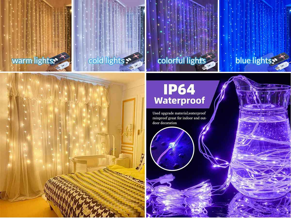 8 Lighting Modes LED Curtain Lights Indoor USB Powered Xmas String Light Remote Control