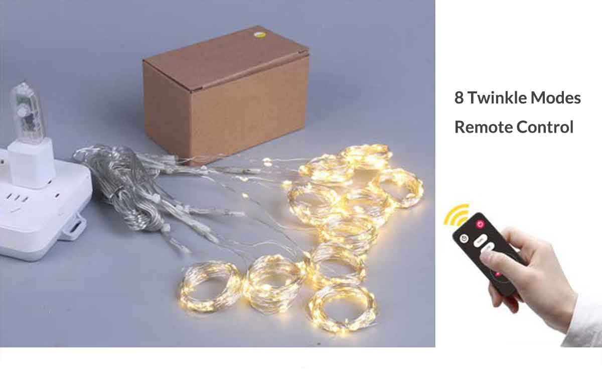 8 Twinkle Modes | Remote Control | 2.8Meters USB Power 5V 6W Plug Cable | IP44 Waterproof | 100% Copper Wire | CE FCC ETL Certification | For Bedroom Wedding Party Backdrop Garden Decoration
